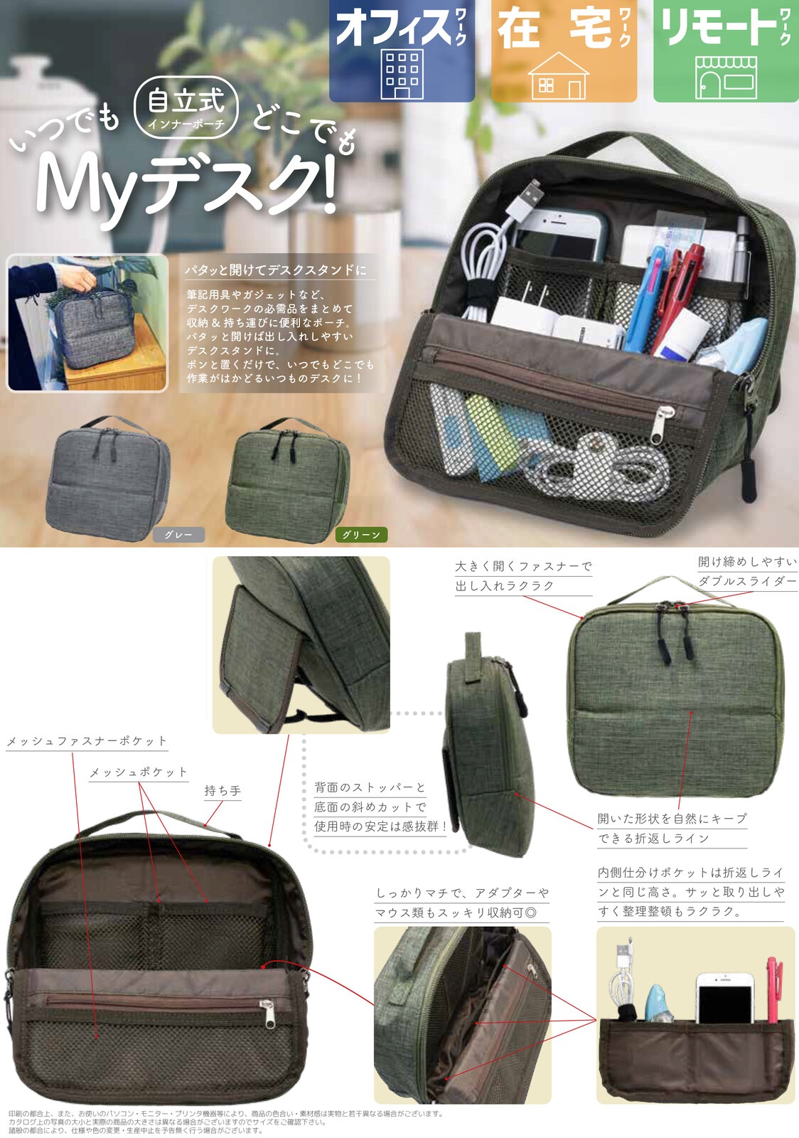 自立 インナーポーチ クッション付き デスク 持ち運び 収納 持ち手
