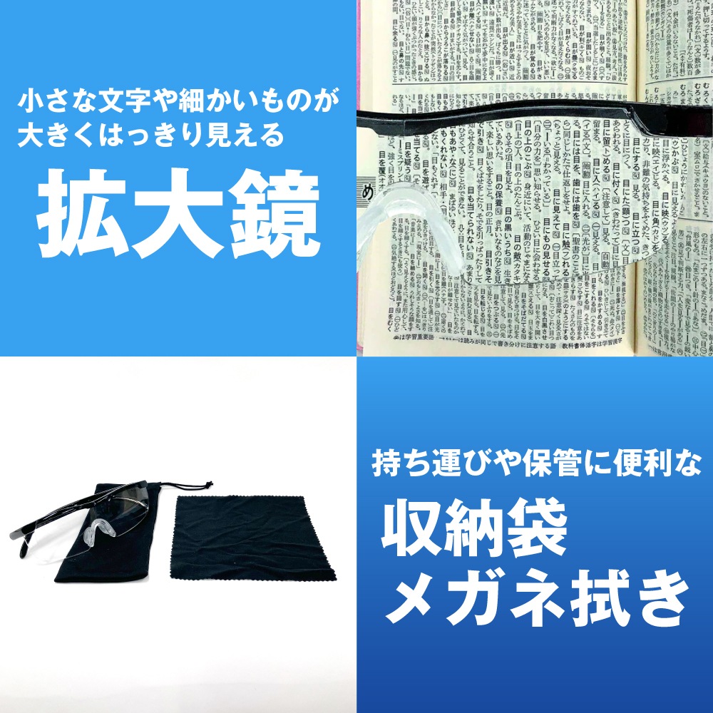 拡大ルーペ メガネルーペ ルーペ メガネ 眼鏡 倍率1.6倍 メガネ型 虫眼鏡 老眼鏡 拡大 ブラック 黒 シニア シニアグラス リーディンググラス プレゼント ギフト
