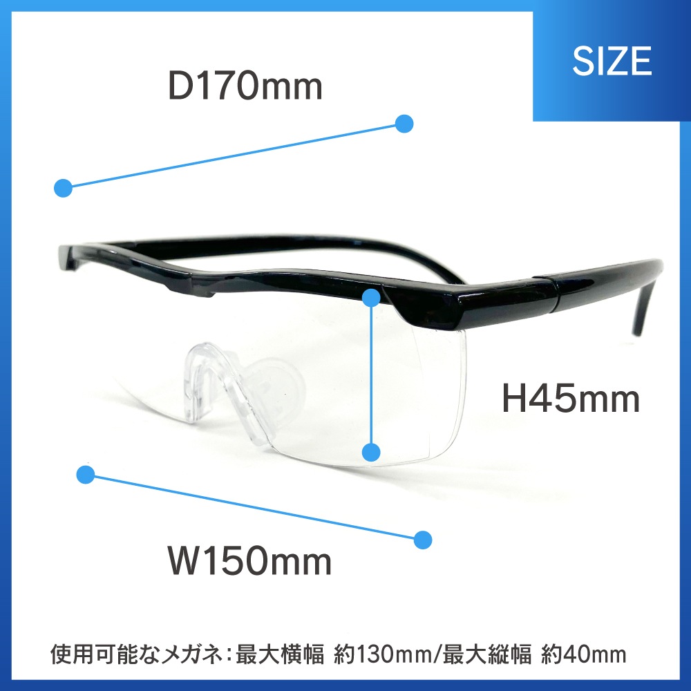 使用可能なメガネ:最大横幅 約130mm/最大縦幅 約40mm